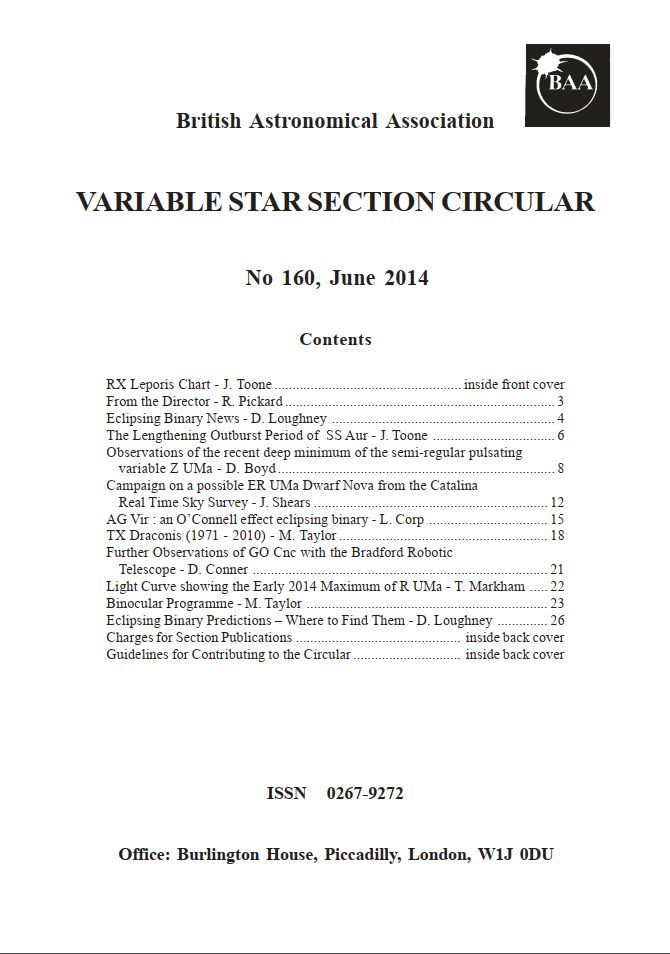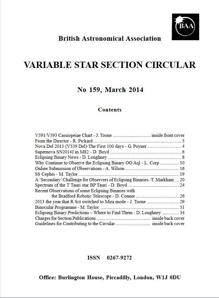 N° hors série Octobre 2014 : Guide pratique de la Science Participative dans cette revue vous trouverez 2 articles l'un consacré aux binaires à éclipses et l'autre aux étoiles pulsantes de type RRLyrae