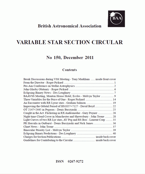 N°150 December 2011 : Light curves of two RRlyr stars, AV PEG and RS BOO.